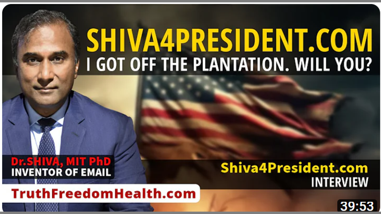 In this discussion, Dr.SHIVA Ayyadurai, MIT PhD, the Inventor of Email, Candidate for President of the United States, shares his historic journey to get off The SWARM's Plantation, and why his run for President of the United States is a historic opportunity for others to awaken their minds to also learn how to get off The SWARM's plantation of Power Profit Control. Full Blog Post: vashiva.com/dr-shiva-i-live-got-off-the-plantation-will-you/