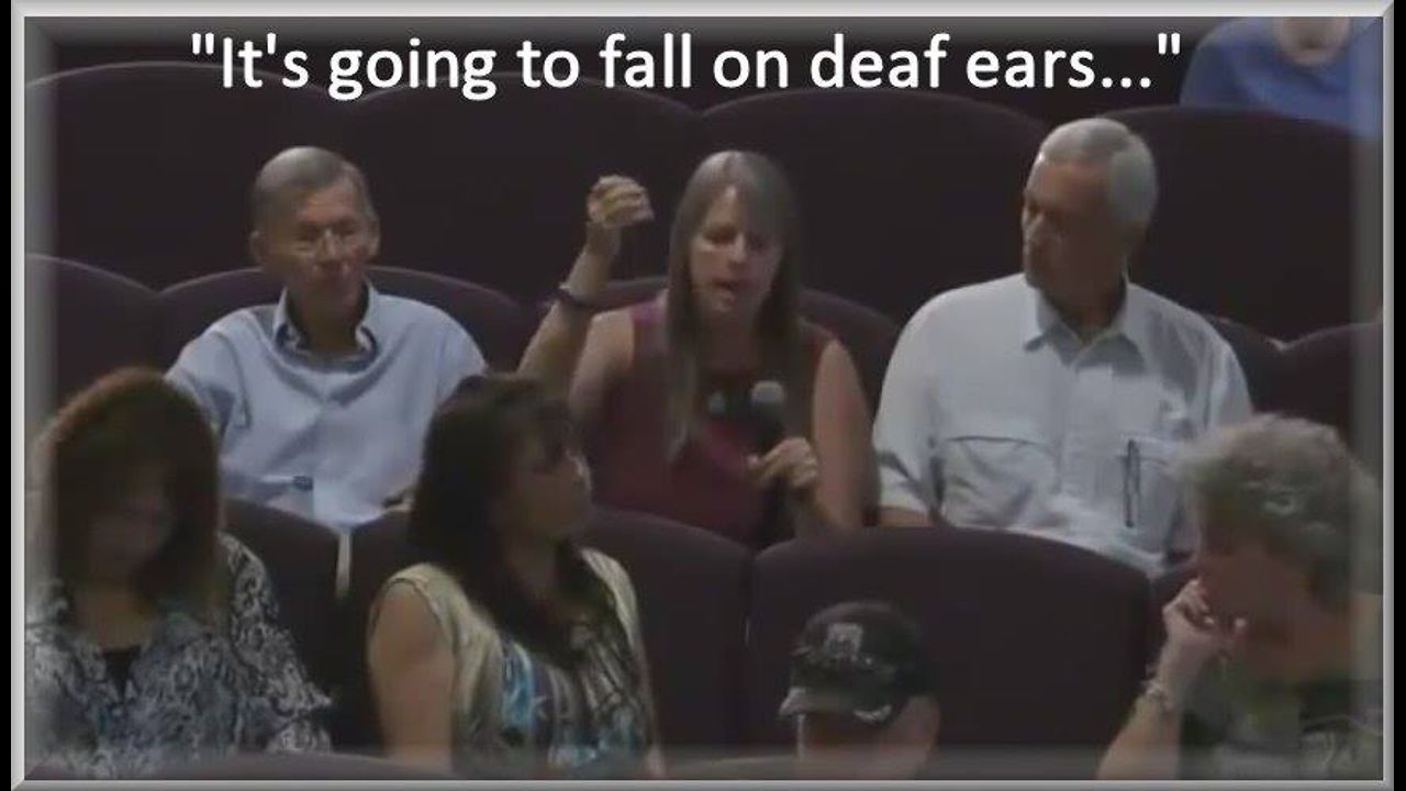 An Arizona Town Hall meeting of citizens with their Senator about the geoengineered toxification of their air, land, water, plants, and bodies appears to fall on nothing but deaf ears. Have you been officially stone-walled when you've needed to know more about the geoengineering military-ops taking place above your head? They came to understand that to get official response, they must: