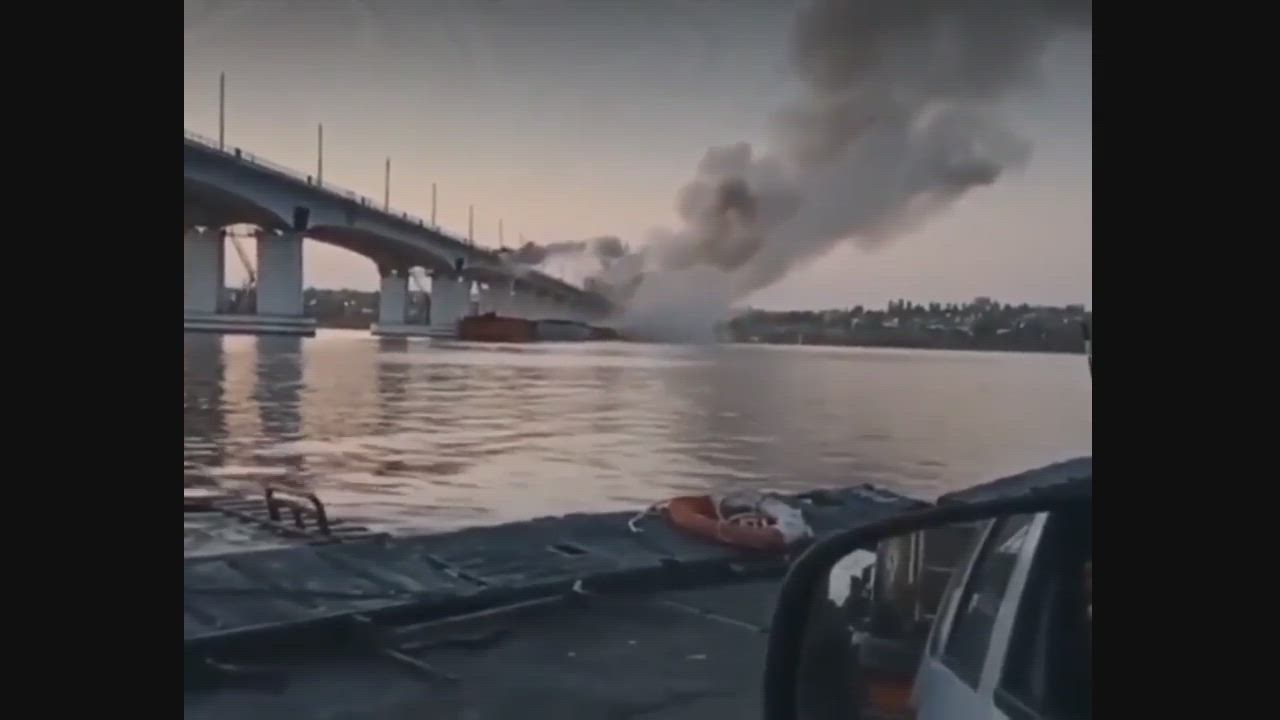 The moment of the missile attack on the Antonovsky bridge in Kherson this morning