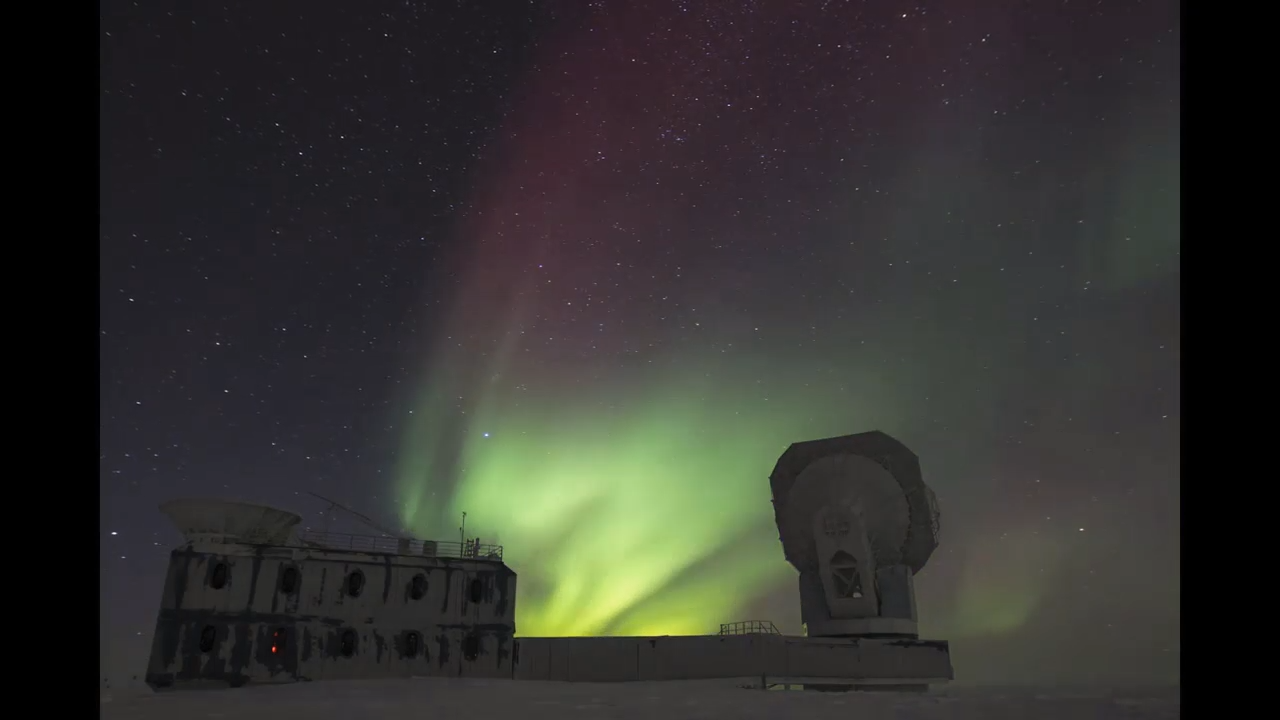 Aurora and Southern Cross Constellation at South Pole Station