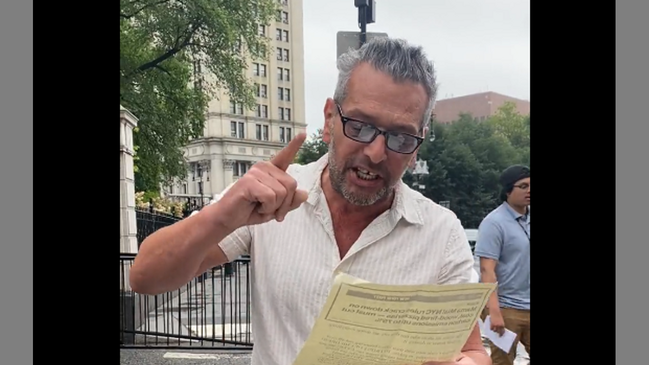 Scott LoBaido Throws Pizza at the NYC City Hall - Give Us Pizza Or Give Us Death! - HaloNews