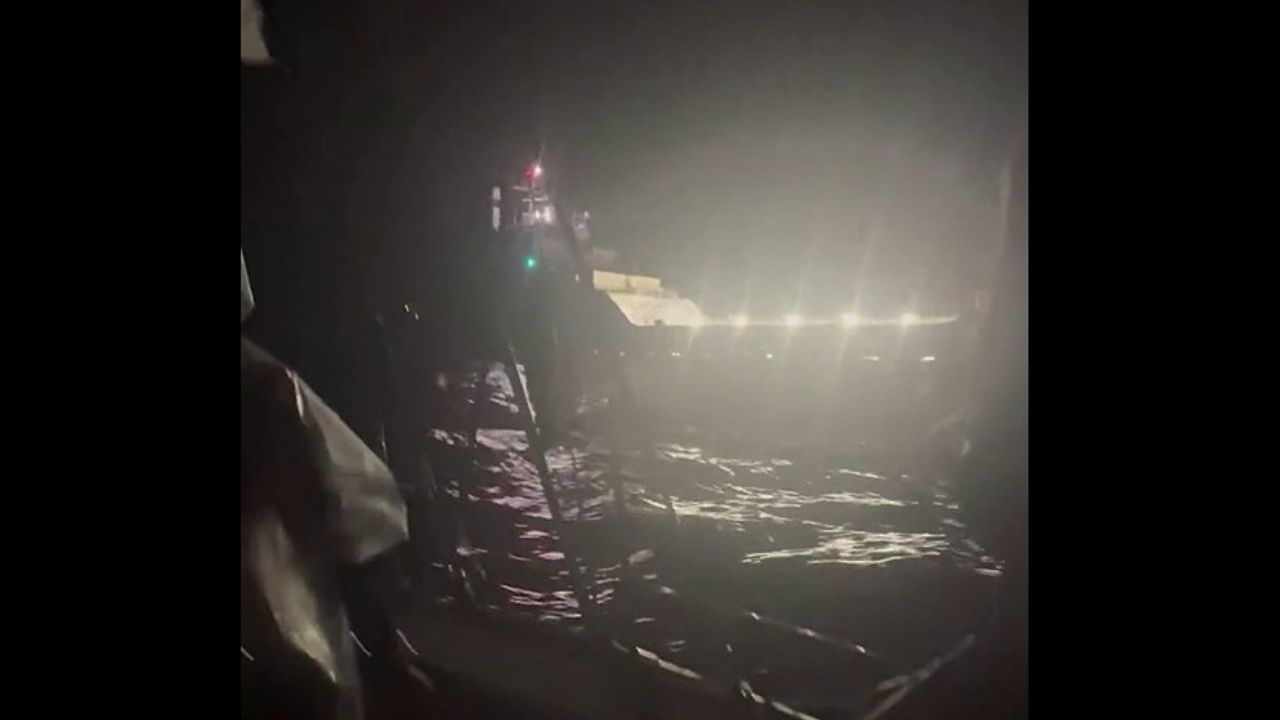 BLINDING lights of Israeli ship right next to flotilla boats