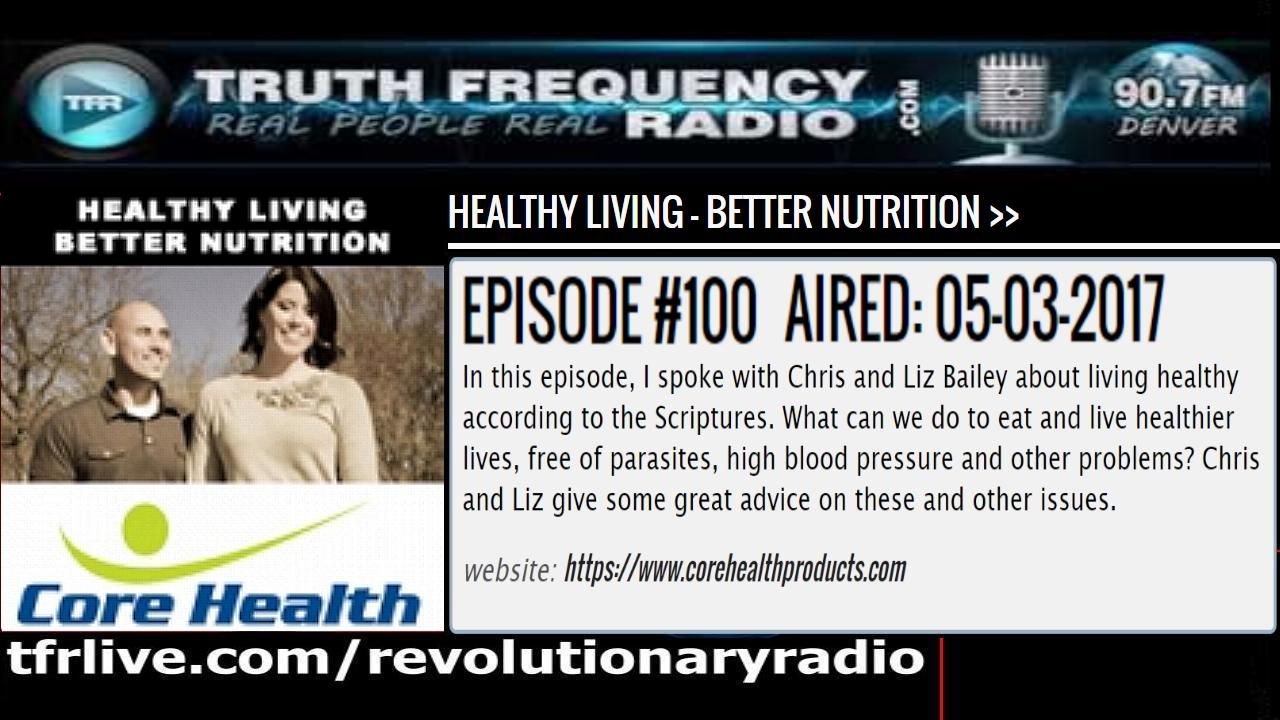 In this episode, I spoke with Chris and Liz Bailey about living healthy according to the Scriptures. What can we do to eat and live healthier lives, free of parasites, high blood pressure and other problems? Chris and Liz give some great advice on these and other issues.