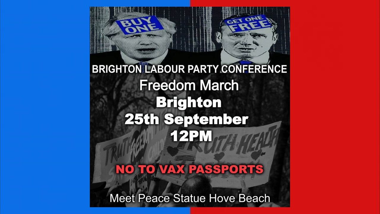 Freedom march + protest at the Labour Party Conference in Brighton Saturday 25th September 2021.