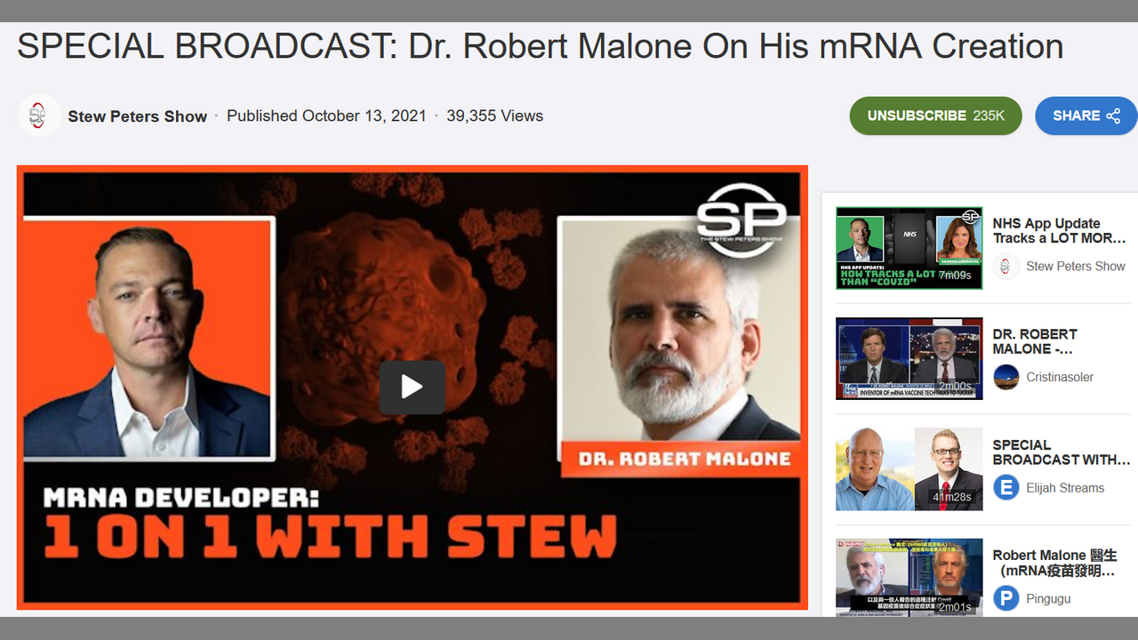 WATCH THE FULL INTERVIEW HERE: https://rumble.com/vnps9l-special-broadcast-dr.-robert-malone-on-his-mrna-creation.html