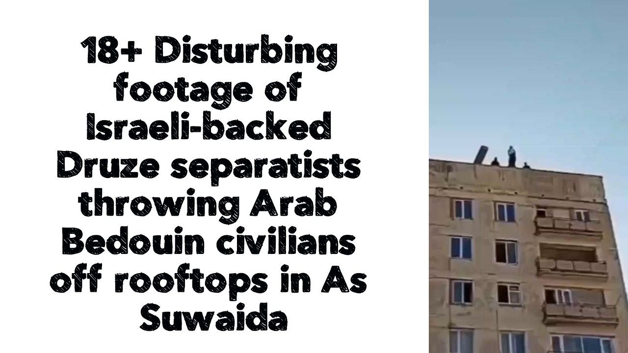 🇸🇾 - Disturbing footage of Israeli-backed Druze separatists throwing Arab Bedouin civilians off rooftops in As Suwaida.