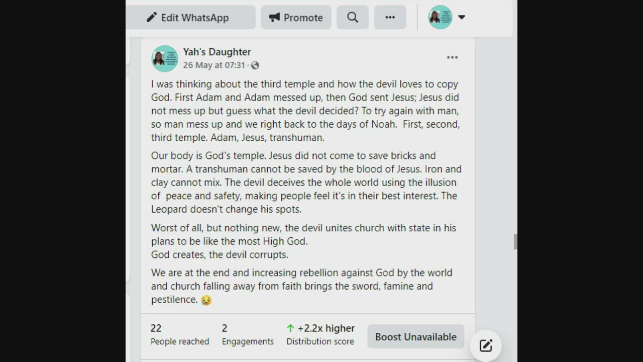 TRANSHUMAN, corruption of all flesh likened to the days of Noah.
