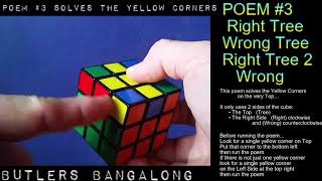 This video solves the yellow corners... It's really super easy... Only 8 moves to the poem... Feel free to mock, criticize, or simply comment as you see fit...