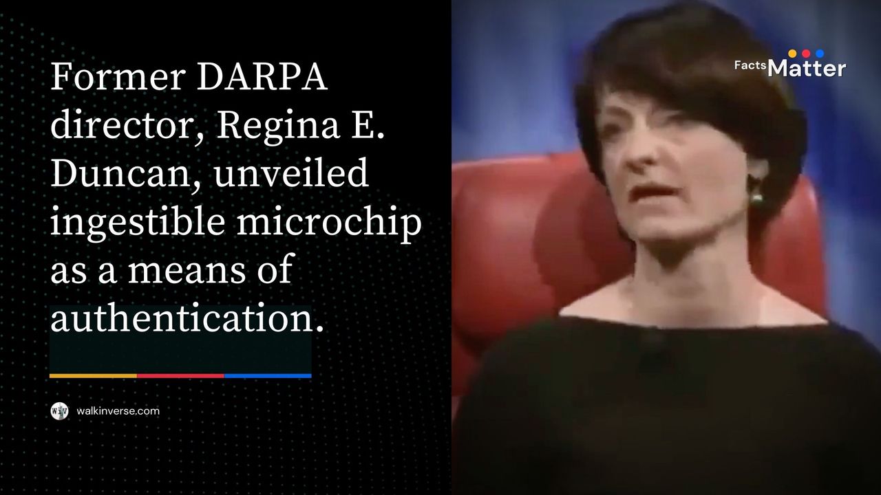 Former DARPA director, Regina E. Duncan, unveiled ingestible microchip as a means of authentication.
