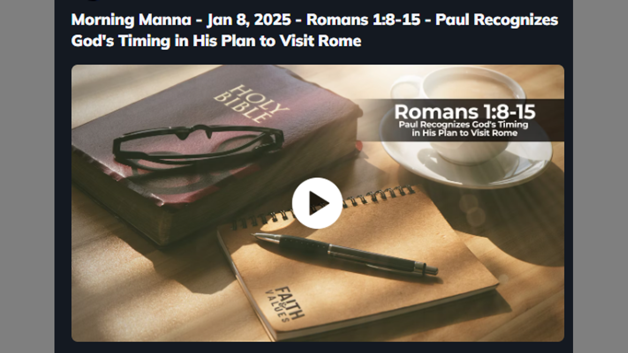 Paul Recognizes God's Timing in His Plan to Visit Rome, Morning Manna Advanced class Book Of Romans 1:8-15 - Morning Manna - Jan 8, 2025 -