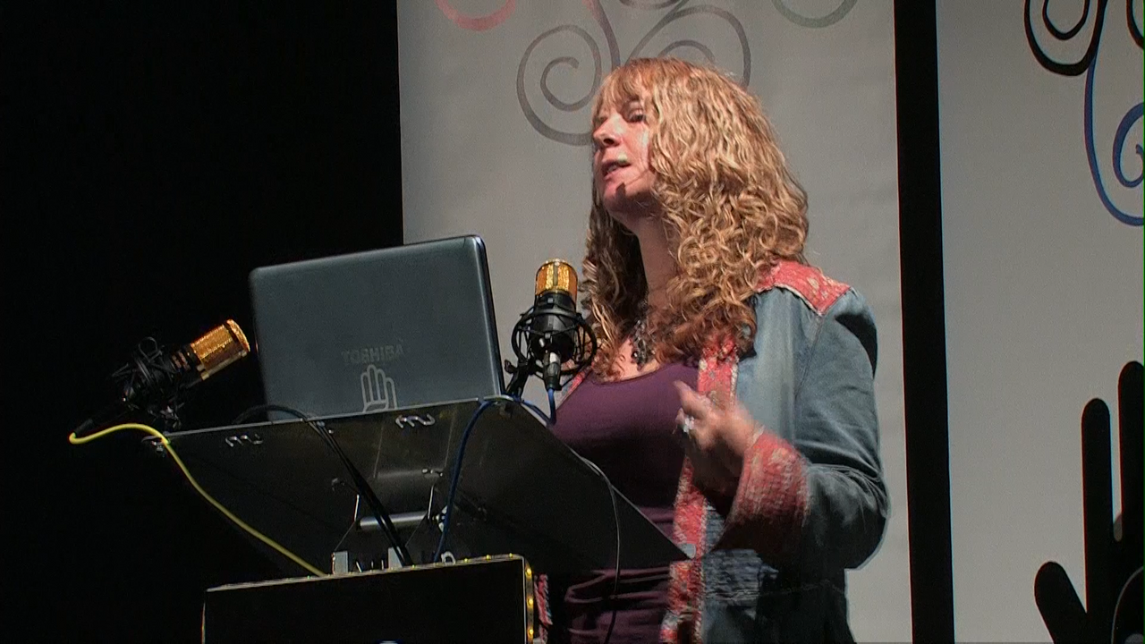 Researcher, Master Dowser, and author Maria Wheatley gives her lecture at the 2nd Bases International conference, at St John's Theatre, in Marlborough, summer 2015.