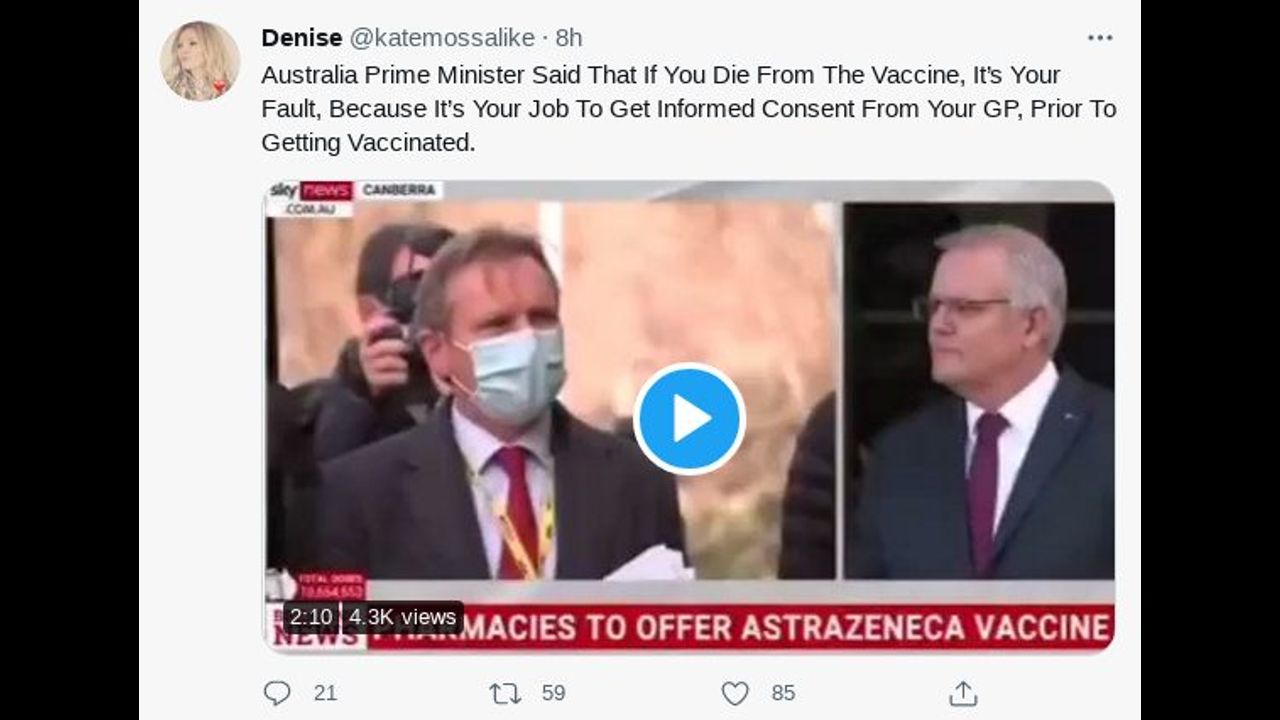 Denise - Australia Prime Minister Said That If You Die From The Vaccine, It's YOUR FAULT, Because It's Your Job To Get Informed Consent From Your GP, Prior To Getting Vaccinated