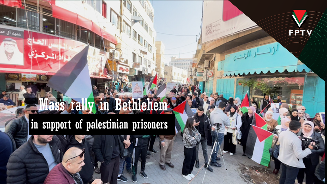 A demonstration was organised in Bethlehem today in support of detainees in occupation prisons, amid demands to stop the genocidal crimes in Gaza.