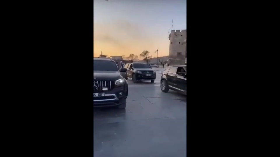 Terrorists snapping videos in front of Aleppo’s castle with their Turkish-Plate numbered SUVs.