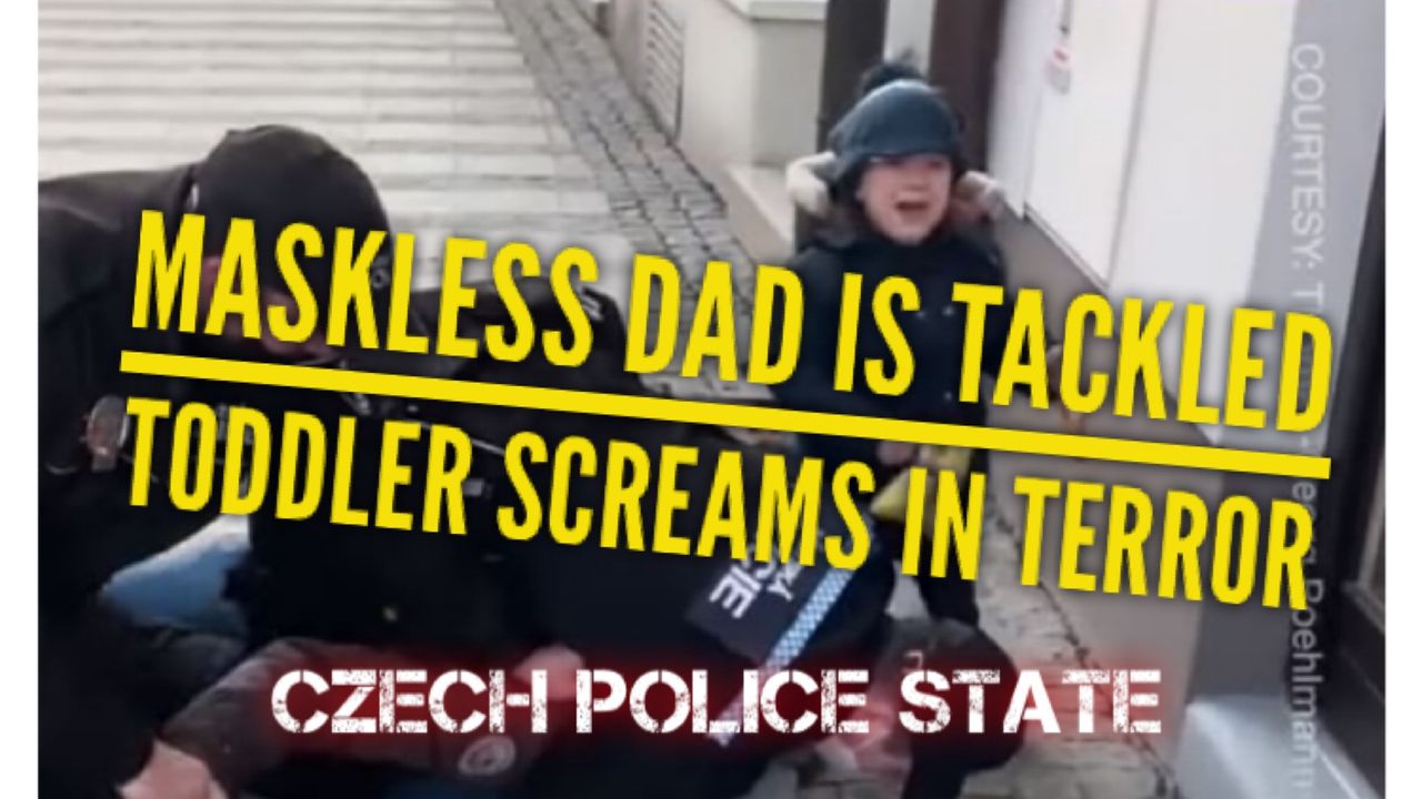 Looks like the Czech Republic has reverted to Soviet-style control and tactics. In the Czech Police State, cops can tackle innocent fathers walking with their kids and arrest them for not wearing a mask! This has got to change folks. Say NO to THE MASK OF THE BEAST!