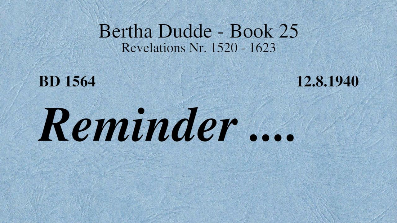 With these words the revelations of God to Bertha Dudde began on June 15, 1937, which found the conclusion on August 17, 1965 with the manifestation 9030 as a seal.
