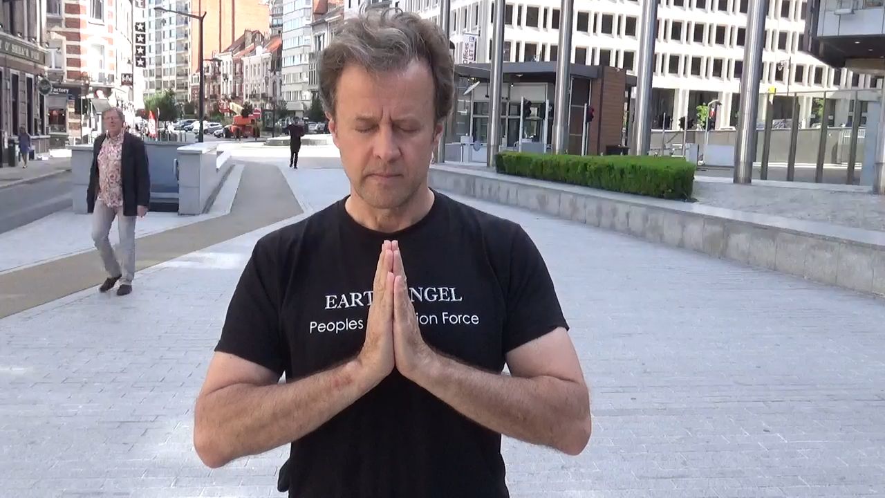 Ashtanga Yoga at the European Commission building in Brussels, Belgium, in protest of covert depopulation methods.