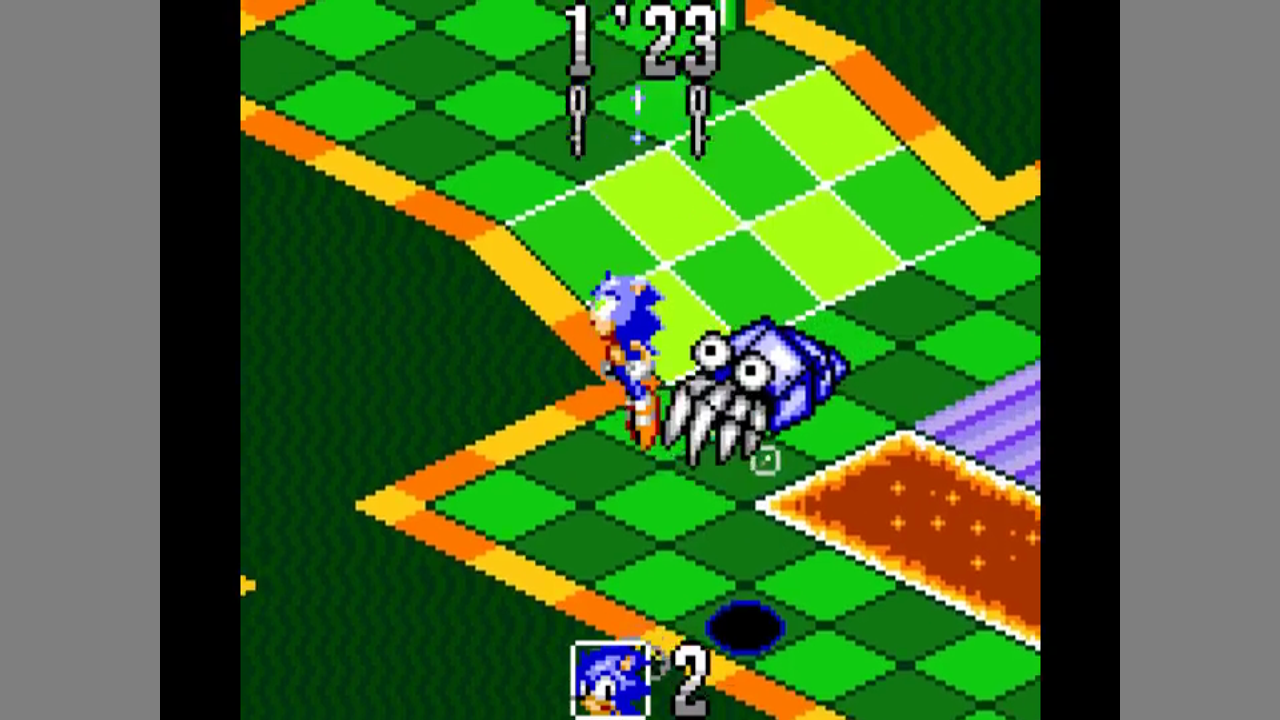 The game uses an isometric perspective. In each level, you need to find three keys in each level and then go to the exit, all within a time limit. Sonic can use his spin dash. You hold down a button a select a direction to go, then Sonic will dash that way once you release the button. This is used to get around fast, defeat Badniks or smash objects. The keys are are all over the labyrinth, and you need to find your way to get to them. Sometimes a Badnik holds a key which it drops if you defeat it. If you get hit while carrying a key, you loose all keys and you need to grab them from where they fell. There are some power-up fields which give you a random power-up, like extra time, a speed up or an extra life. after three stages, there is boss fight.