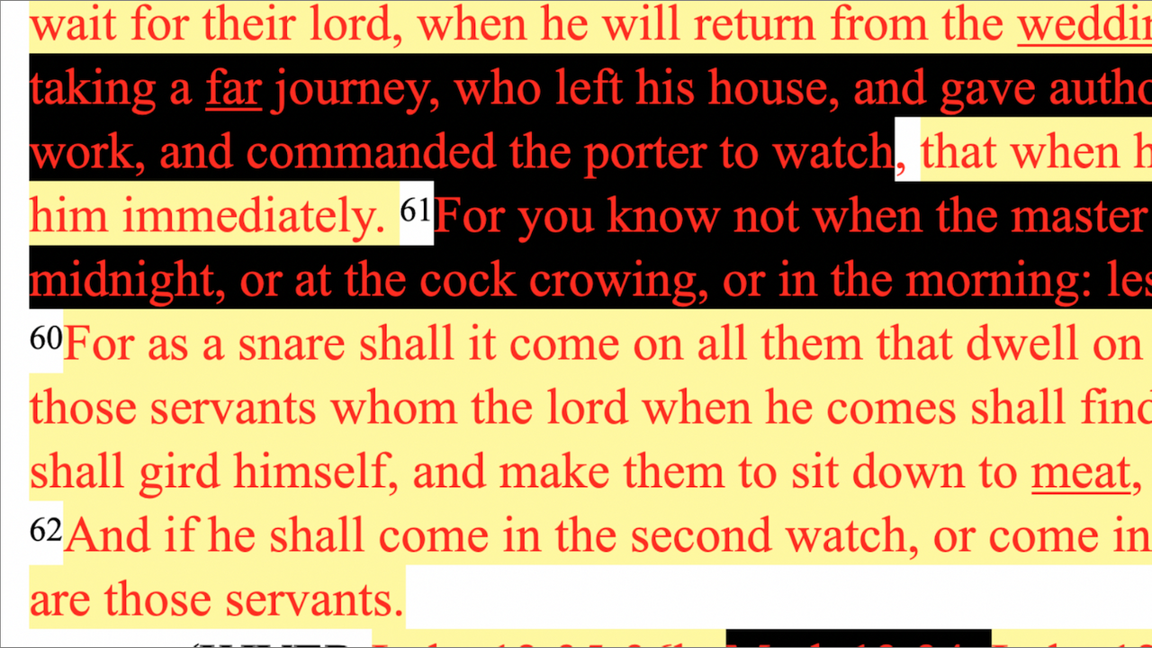 Mark 13:35-36, Luke 12:36-38, & 21:36 combined