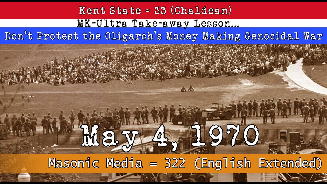 May 04, 1970 "Kent State" = 33 (Chaldean) & "Masonic Media" = 322 (English Extended)