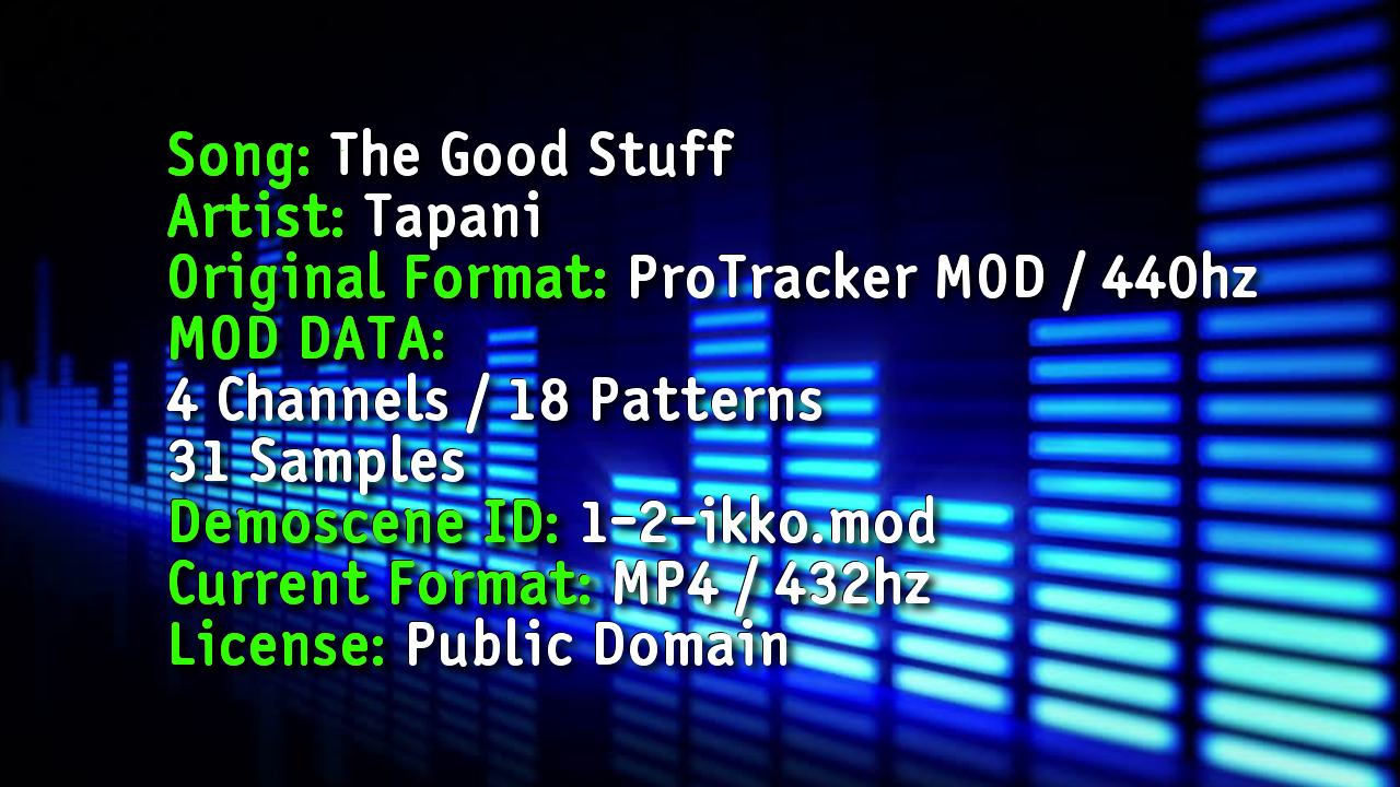 On RoxyCast: https://roxycast.com/post/50791_song-the-good-stuff-artist-tapani-original-format-protracker-mod-440hz-mod-data.html