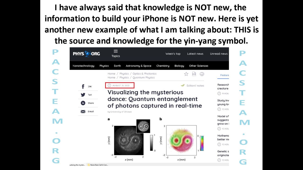 I have always said that knowledge is NOT new, the information to build your iPhone is NOT new. Here is yet another new example of what I am talking about: THIS is the source and knowledge for the yin-yang symbol.