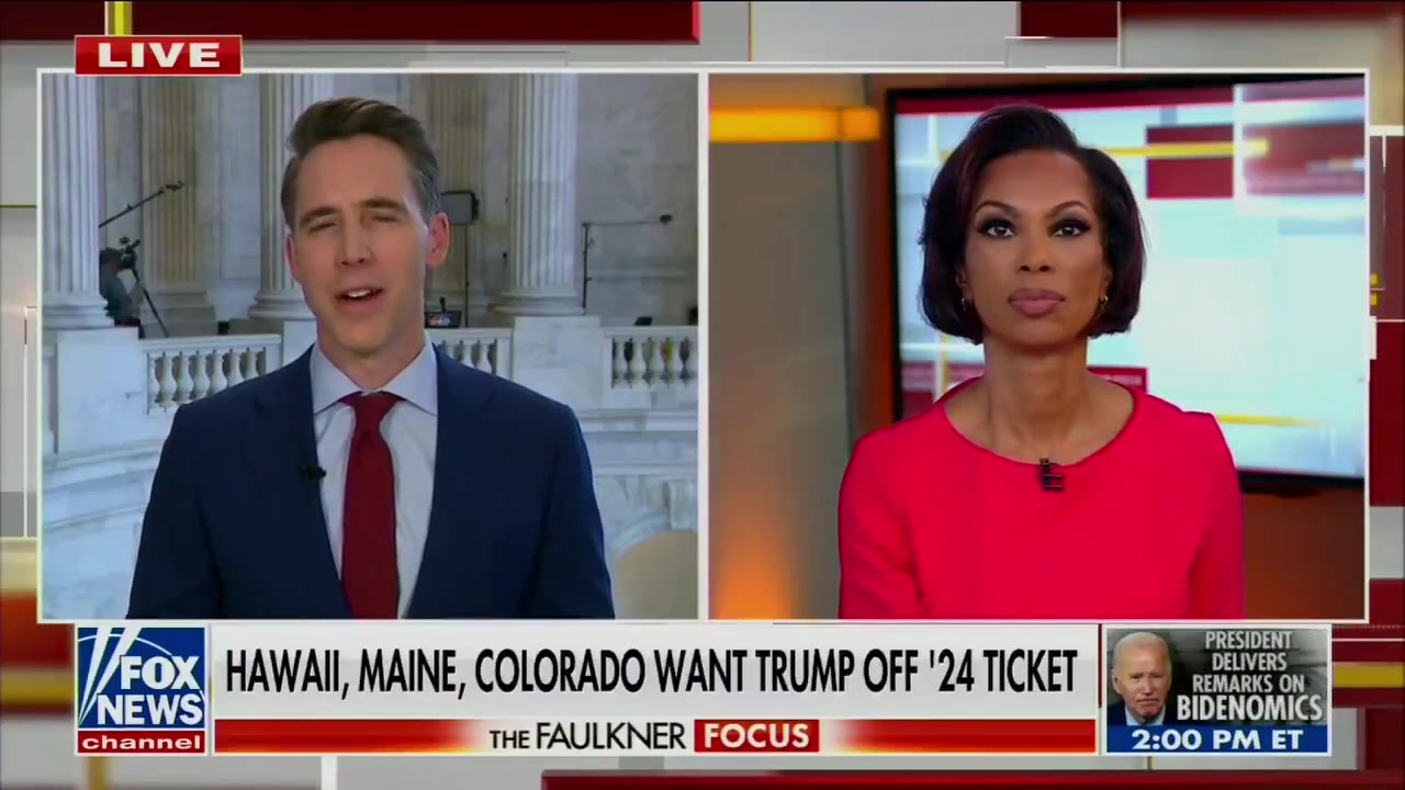 This is 100% Political, Election Interference - Sen. Josh Hawley. States trying to keep TRUMP off the ballot: 'This is totally, radically, unconstitutional.'