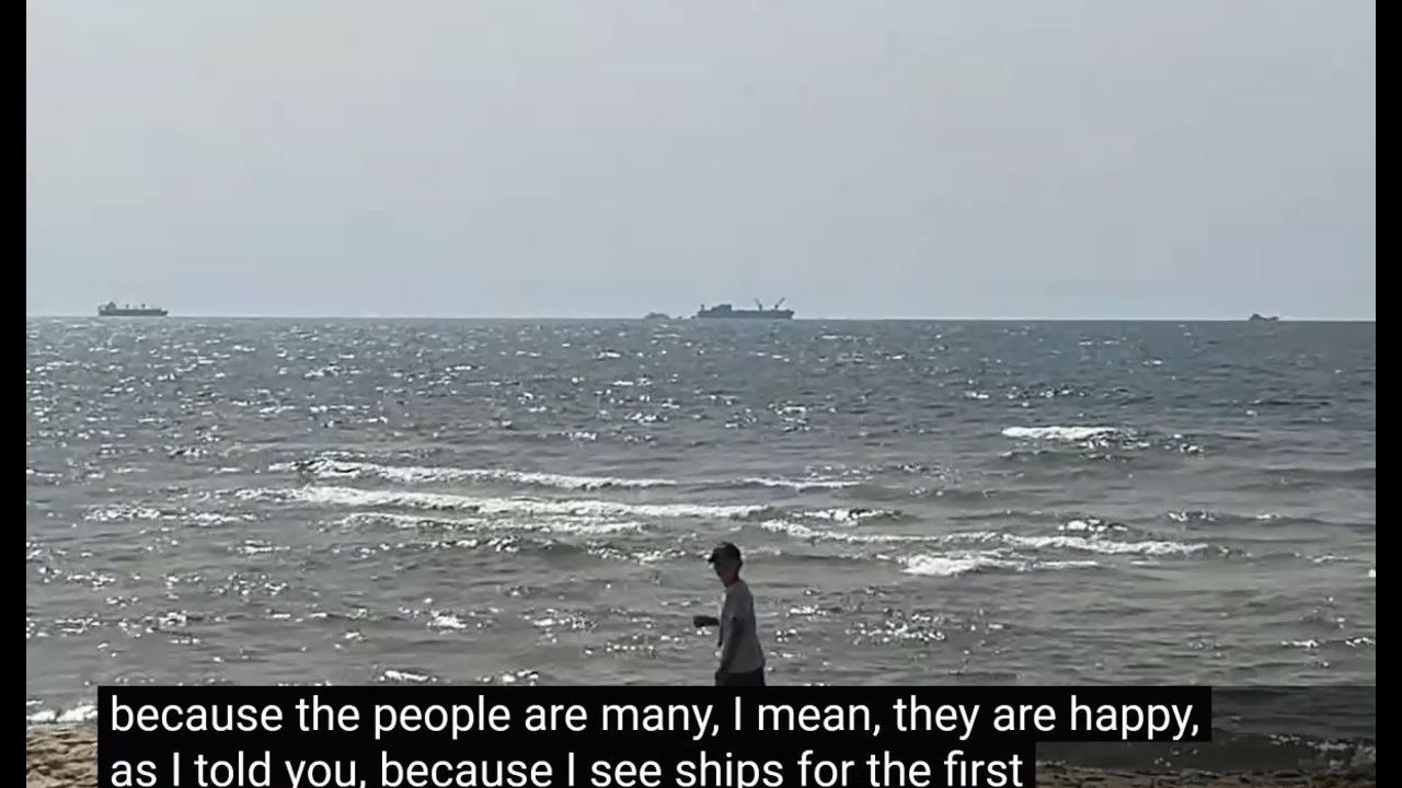 North Gaza Watching American Aid Ships Docking in Built Port