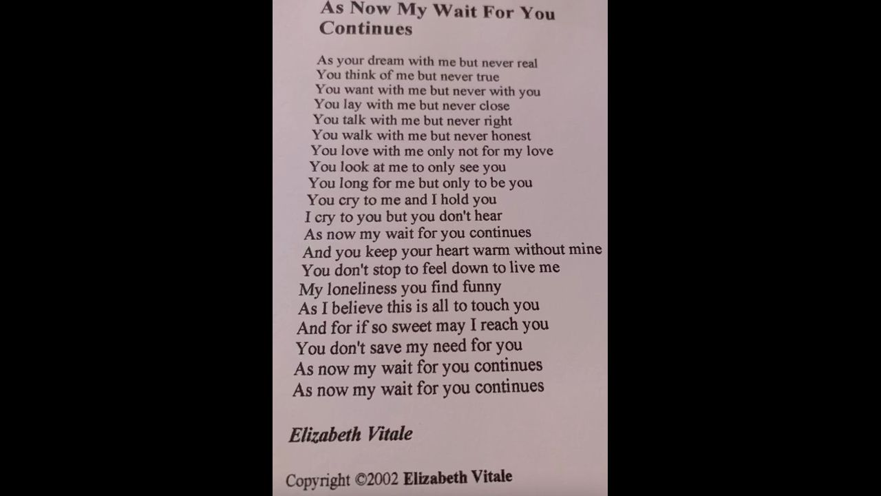 As Now My Wait For You Continues Elizabeth Vitale