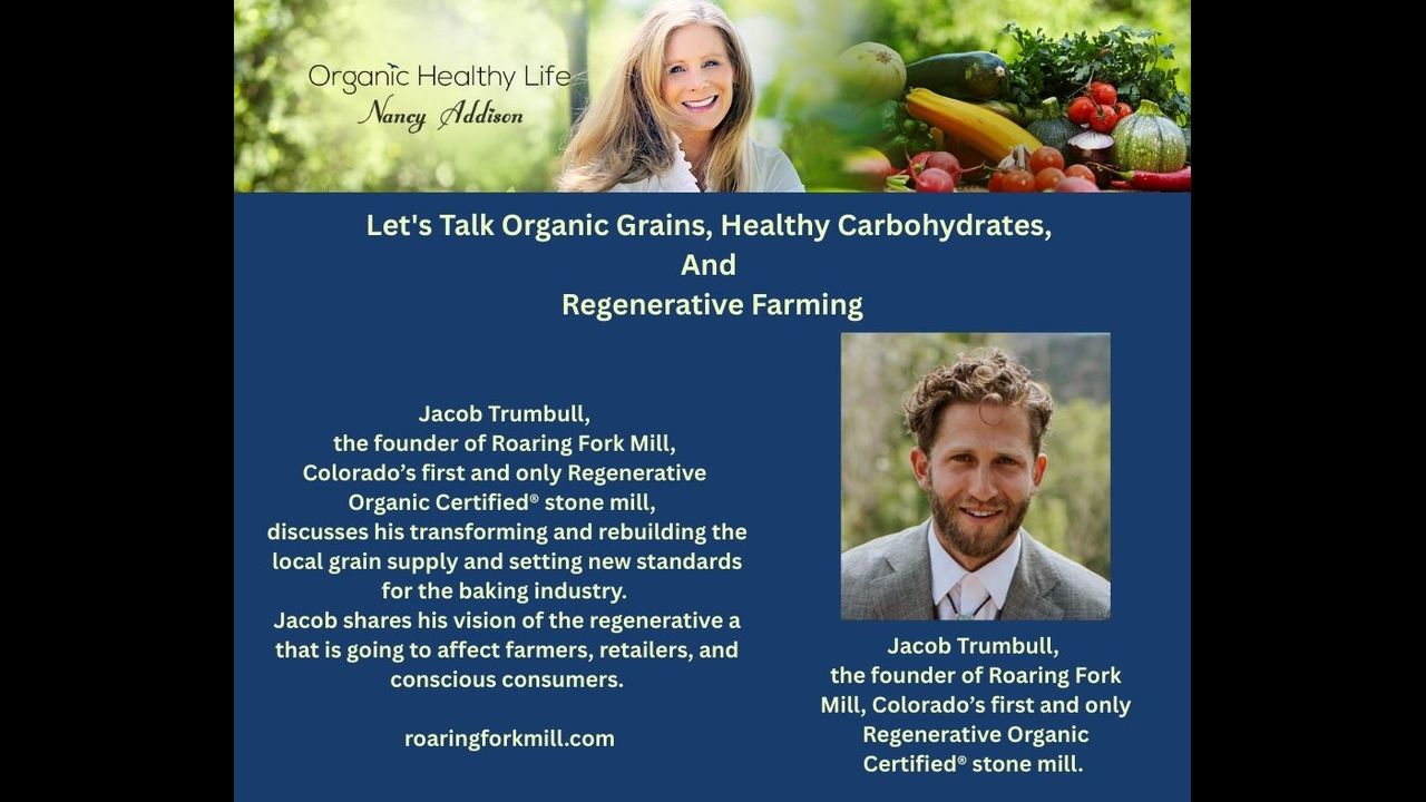 Leading nutritionist/health specialist, award-winning author, and radio show host, Nancy Addison talks with Jacob Trumbull, the founder of Roaring Fork Mill, Colorado’s first and only Regenerative Organic Certified® stone mill. They discuss his transforming and rebuilding the local grain supply and setting new standards for the baking industry. Jacob shares his vision of the regenerative agriculture and how that is going to affect farmers, retailers, and conscious consumers.