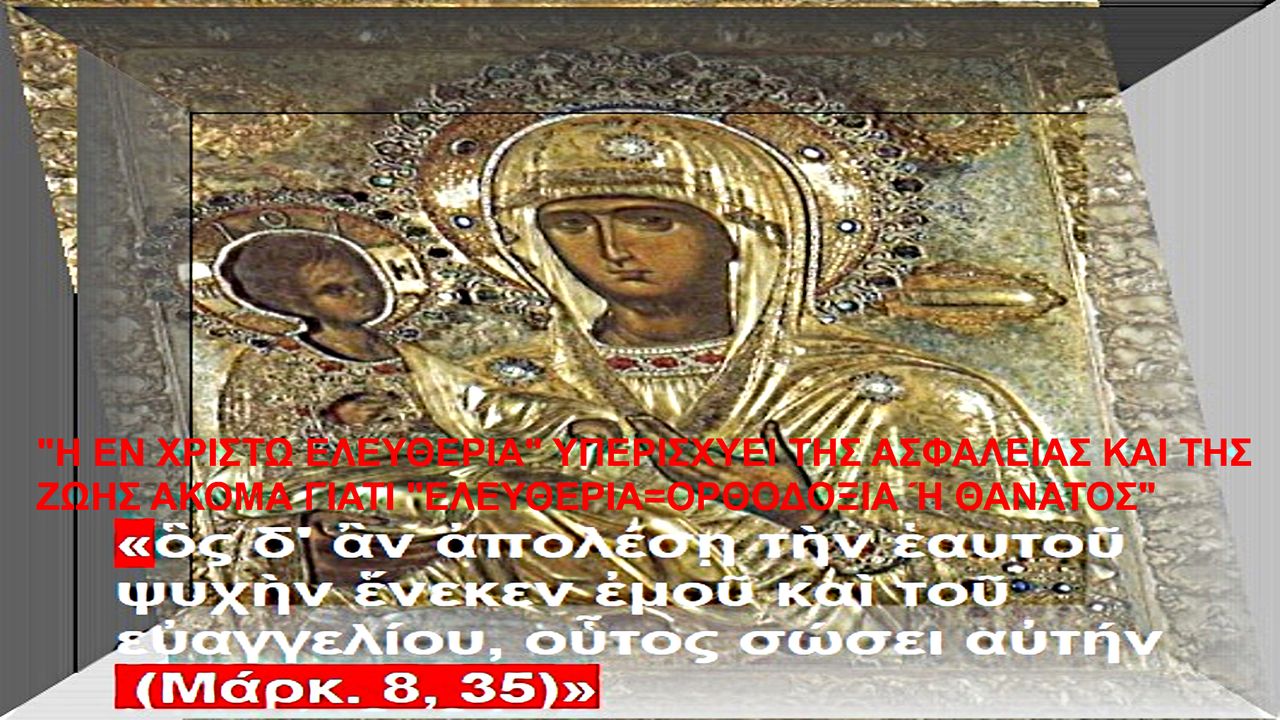 "Η ΕΝ ΧΡΙΣΤΩ ΕΛΕΥΘΕΡΙΑ" ΥΠΕΡΙΣΧΥΕΙ ΤΗΣ ΑΣΦΑΛΕΙΑΣ ΚΑΙ ΤΗΣ ΖΩΗΣ ΑΚΟΜΑ ΓΙΑΤΙ "ΕΛΕΥΘΕΡΙΑ=ΟΡΘΟΔΟΞΙΑ Ή ΘΑΝΑΤΟΣ".