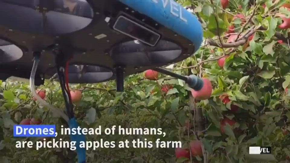 Drones Pick Apples In Israel. The Drone Is In Fact Able To Determine The Degree Of Ripeness Of The Apples, The Sugar Level, and Possibly If The Fruit Has Any Diseases.