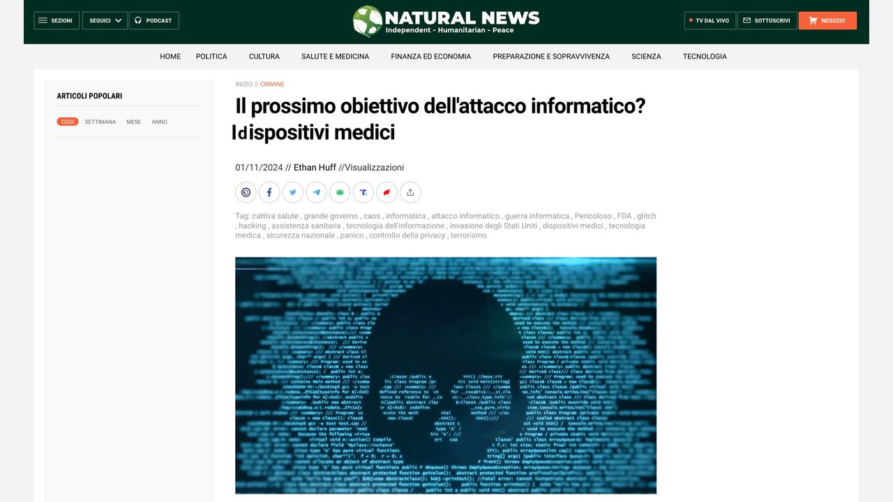 Link articolo https://www.naturalnews.com/2024-01-11-next-cyberattack-target-medical-devices.html Collaboro su Telegram qui https://t.me/s/Canal104plus/ NDICE ALFABETICO https://www.tinelli.eu/indice.html