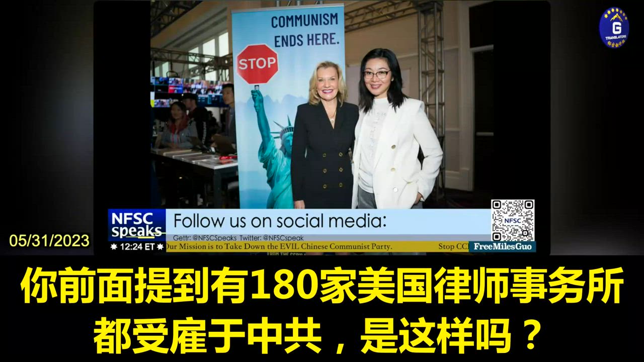 05/31/2023 妮可参加Winn Tucson节目:有多达180家美国律师事务所受雇于中共。他们从踏进中共国的那一刻起就已经妥协了。他们的工作不是帮助中国人民争取自由或保护中国人民的人权,而是增强和巩固中共的权力。他们是中共的受益人,却又在美国司法系统占据高位,这令人深感担忧。