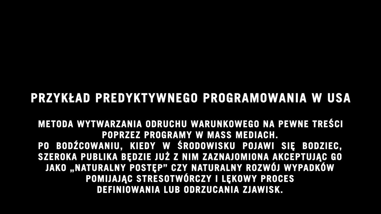 Predyktywne programowanie - metoda wytwarzania odruchu warunkowego na pewne treści poprzez programy w mass mediach. Po bodźcowaniu, kiedy w środowisku pojawi się bodziec, szeroka publika będzie już z nim zaznajomiona akceptując go jako naturalny postęp czy naturalny rozwój wypadków pomijając stresotwórczy i lekowy proces definiowania lub odrzucania zjawisk. Predyktywne programowanie jest prostym rozszerzeniem warunkowania stosowanego w szkołach.