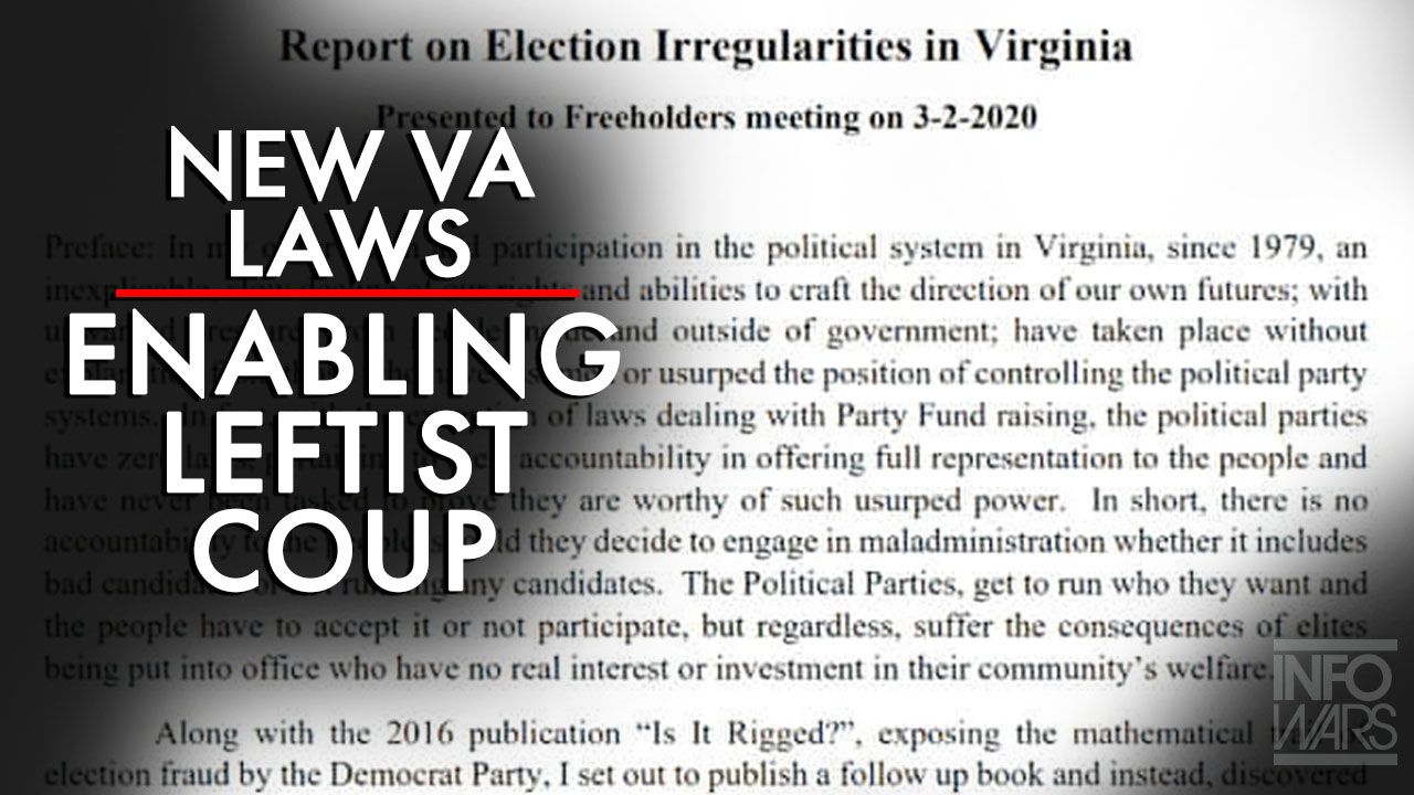 Vince Agnelli of http://newvirginiaplan.com joins guest host David Knight on The Alex Jones Show to break down the new laws enabling leftists to overthrow the traditionally red elections in Virginia.