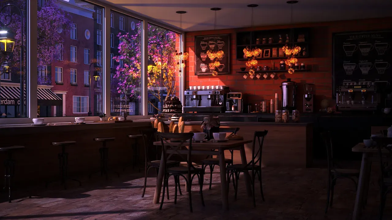 Rainy Night and Coffee Shop Ambience with Rain Sounds & Relaxing Jazz Music.