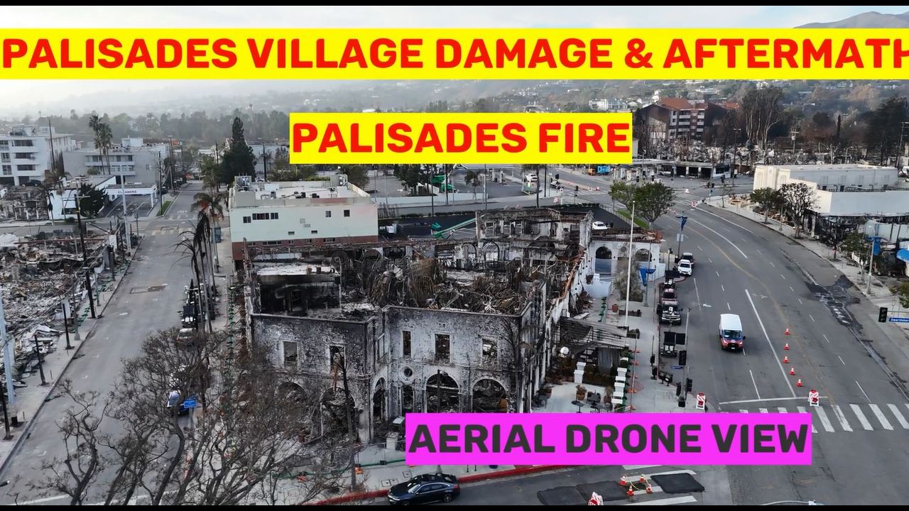 California Palisades Fire AFTERMATH - Palisades Village Drone Aerial Footage islandlands