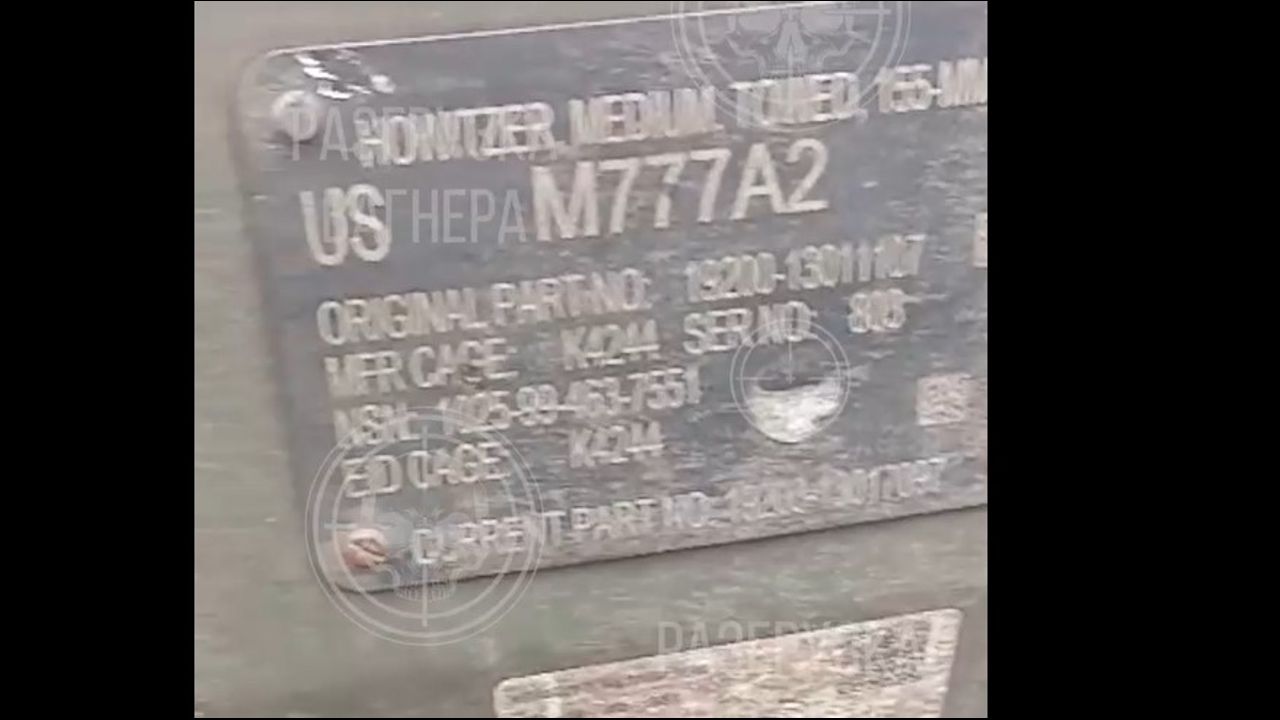 PMC Wagner filming a piece of US M777 Howitzer destroyed somewhere around Bakhmut
