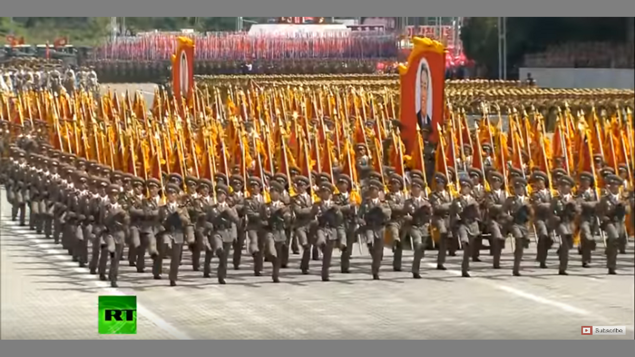 Parade pageantry in Pyongyang North Korea
