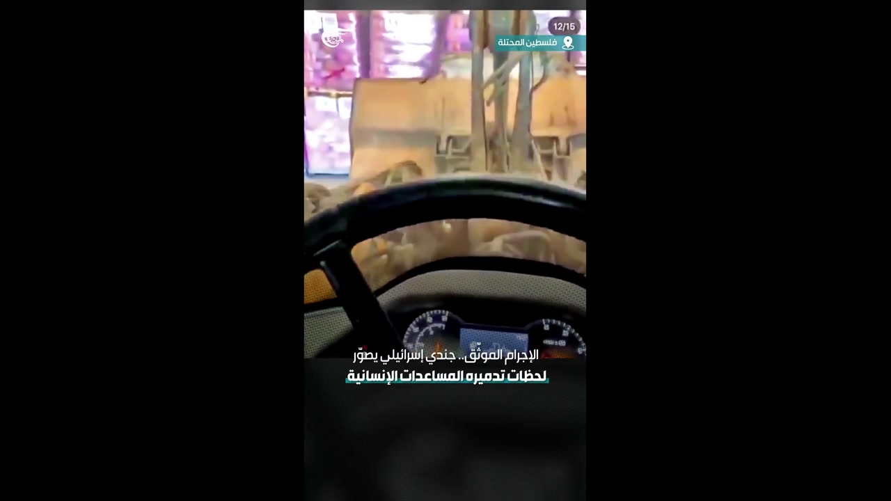 💥🇵🇸 More documented crimes.. An Israeli soldier films the moments of destroying humanitarian aid for the people of Gaza with his bulldozer.
