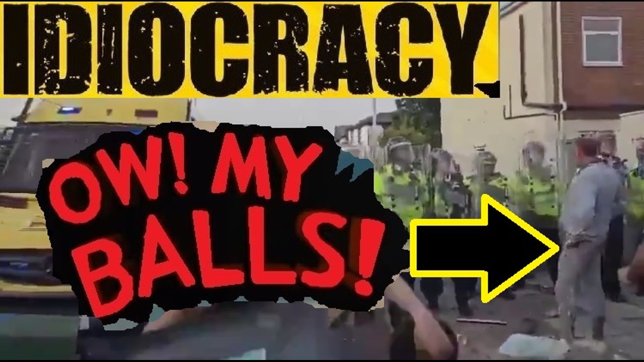 Some locals kicking off with the police somewhere in the UK, could be Leeds, Bradford, Oldham, Manchester, or some other northern sh*t hole. Grey track suit guy is a classic, straight out of Idiocracy.