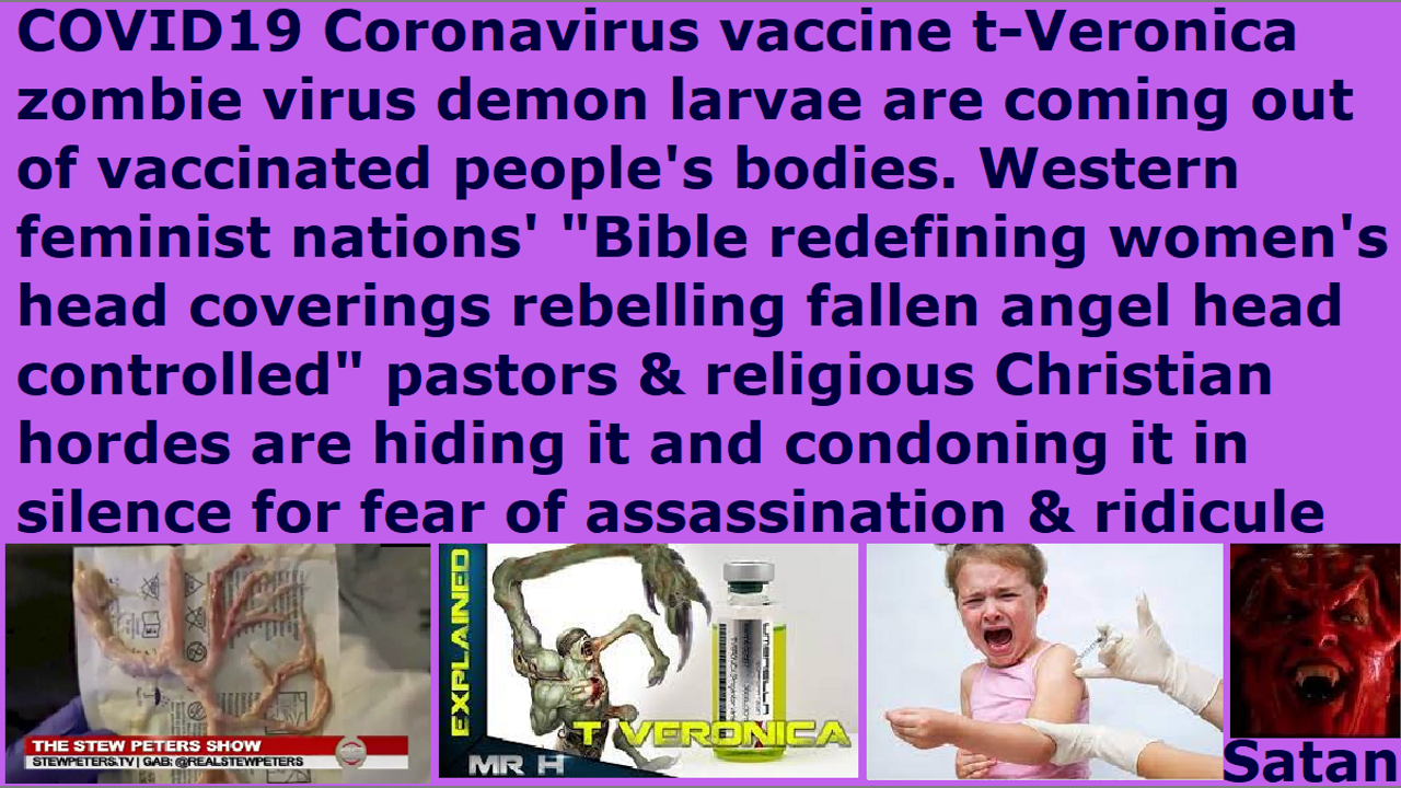 *** Intelligence news update from the Human Homo-Sapiens Race Survival Resistance (HRSR) headquarters and Republic Rebel Alliance battlefront (May 2022). COVID19 Coronavirus vaccine t-Veronica zombie virus demon larvae are coming out of vaccinated people’s bodies. Although we real Christians had been warning about the COVID19 Coronavirus vaccine’s t-Veronica zombie virus content in our daily sermons for decades without sleeping or eating or bathing or looking for work to cover our own living costs or marrying, while getting cooked alive by CIA microwave oven weapons from next door homes & rooms every day and getting persecuted horrifically, these Western feminist nations’ cowardly traitor “women’s equality” “female church donator loving” pastors and religious Christian hordes, who are redefining Bible verses and rebelling against women’s head coverings so that their heads are controlled by the fallen angels, continue to hide the information for fear of assassinations and ridicule by their church donators as lunatic heretic idiotic narcotic maniacs. This is a treachery that has not yet been seen in the entire history of the church. These pastors and “women’s head coverings rebelling fallen angel head controlled” religious Christian hordes are fake “Bible’s watchmen on the wall” and they have blood on their hands. The worst ones are the sly ones that insult God by slyly trying to appease both God and Satan Lucifer by modifying & diluting & sterilizing & picking & choosing & editing the 100% truth of God that we real Christians share with them by risking our own lives, in order to make it safe for themselves from assassinations and ridicule, and make it palatable to their church donators’ dead brains and their Christian ministry business customers’ pea brains. All they do is just demonstrate against the vaccine and home lockdown, but they do not inform the people about the t-Veronica zombie virus in the vaccines as we instructed them, nor do they repent of redefining the hundreds of Bible verses and rebelling against women’s head coverings, and cross-dressing in “Satan Lucifer’s post-1960s cross-dress-project” men’s trousers, and stealing unbiblical post-1873 10% salary tithe income taxes, and hundreds of other things we told them. They do not instruct their church donators to do so either. They refuse to sell their homes and church corporations’ church buildings and retirement pensions, and refund the tithes back to the church donators and apologize to their church members for stealing. We have shown thousands of videos and photos, but they have hid everything from God’s people and spiritual army. They are infiltrated floods of post-1960s Illuminati “Flower Children” New Age Wicca witch hippy grandchildren “humanism” “political correctness” “women’s equality” “Atlantis Hellenistic Satanism Western values” religious hypocrites and the End Times apostate harlot Church. They have a form of Christianity, but they deny its Holy Spirit and the truth. Throw your pastors out of your churches, especially the reptilian hybrid pedophile cannibal Satanist pastors, and preach the truth, so that 99% of your church donators will leave the church, so that God’s house will be cleansed of their filth. Stop the desecration of God’s holy church by these flood of hippy grandchildren Sananda Jesus worshippers and Jezebel worshippers and Mammon worshippers. These church donators and their filthy donations need to be removed from God’s house. Do it now and do not wait until tomorrow. Repent and receive Jesus as Savior, and make straight the way of the Lord!