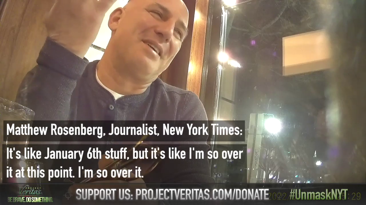 [NEW YORK – Mar. 8, 2022] Project Veritas published a bombshell video on Tuesday showing Pulitzer Prize winning New York Times correspondent, Matthew Rosenberg, speaking about the events of January 6, 2021, in a way that contradicts his own reporting.