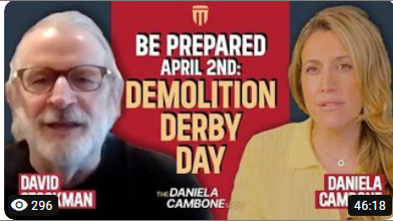 Buckle up. If you’re in the stock market or bond market, there’s going to be an explosion on the days leading up to April 2,” warns David Stockman, a former businessman who was a Republican U.S. Representative and the Director of the Office of Management and Budget under President Ronald Reagan.