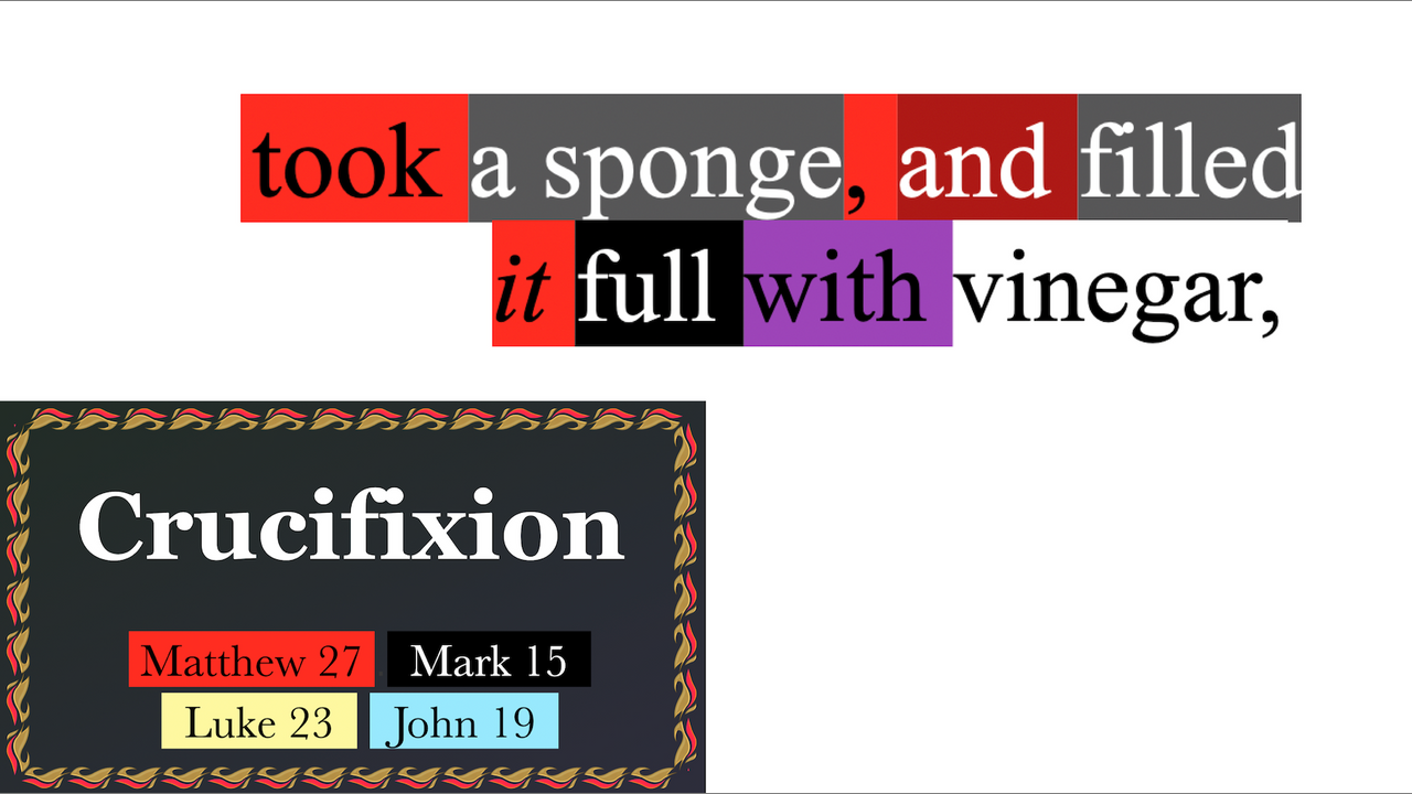 Matthew 27:47, Mark 15:35, Luke 23:36, John 19:29 combined