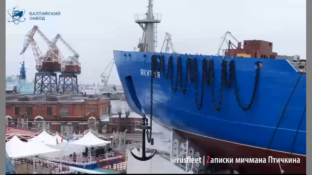 Launch of the Yakutia nuclear-powered icebreaker, the fourth universal nuclear icebreaker of project 22220