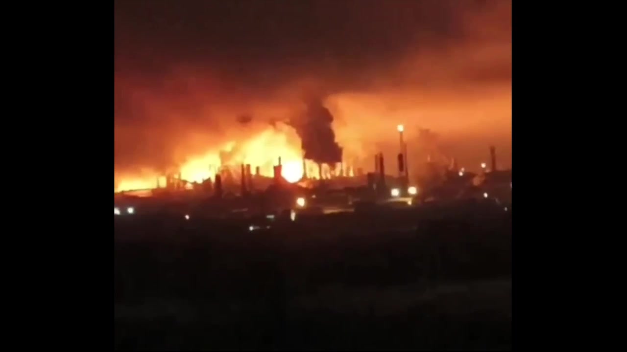 Authorities reported that drone debris fell in an industrial zone. Publics showed a video of the fire.
