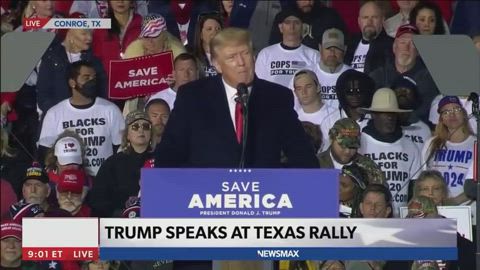 Former President Donald Trump talked about One America News at the Save America rally in Conroe, Texas.
