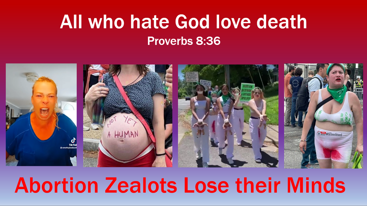 This video is a collection of the response of the Lunatic Possessed Left's reaction to the Reversal of Roe vs Wade. You will see actual clips of demons speaking through people. Various Anti-Life groups have made threats of violence such as Antifa, and a new group called Jane's Revenge. They do obscene protests and even are invading churches stripping themselves naked in Church. They have no modesty and no decency. In the end I allude to what the devil's next plan is. America needs to repent. I've added Kemper Crabb's song Malediction to this video.